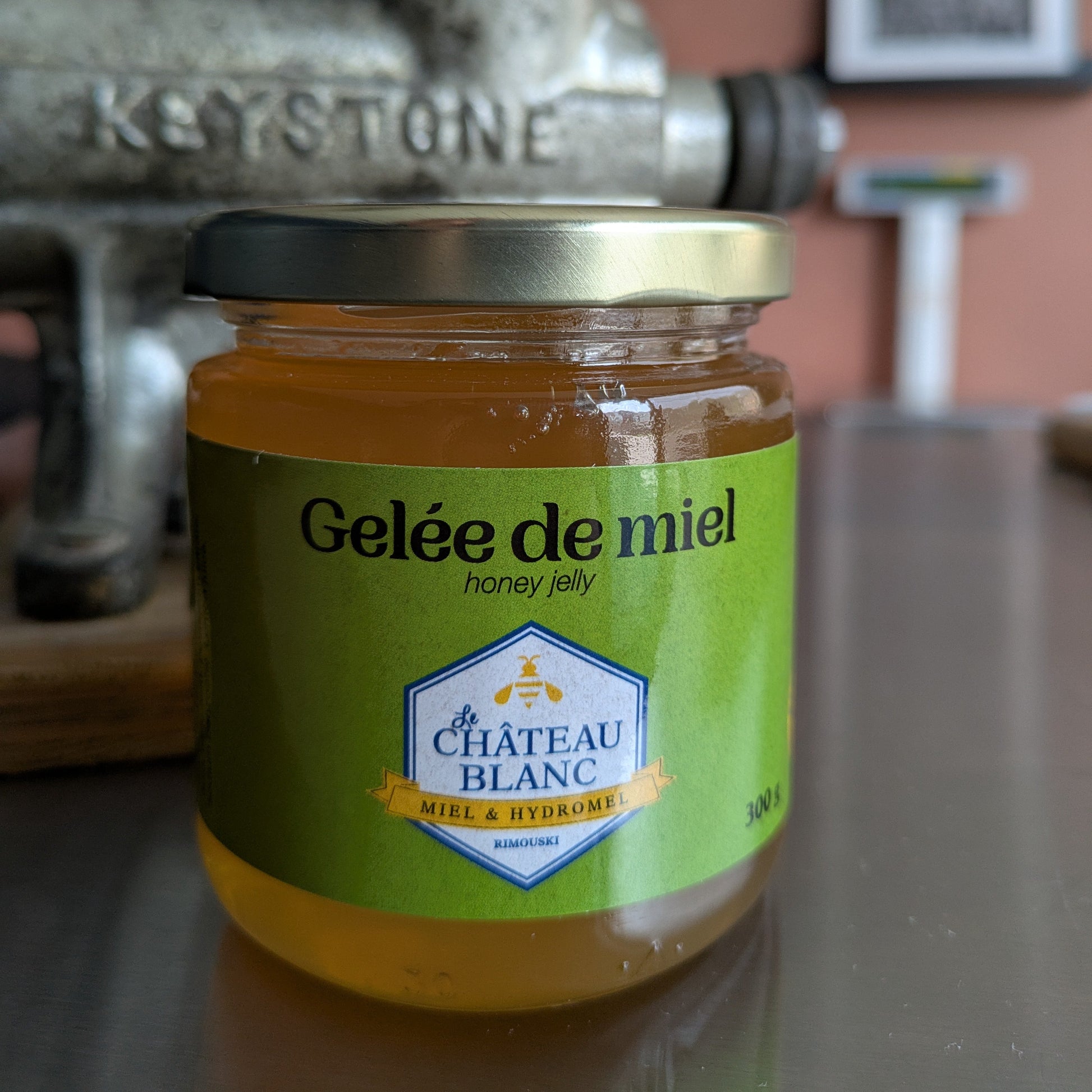 Une gelée de miel faite à partir du miel local de la miellerie le Château Blanc. Une saveur tout en douceur.